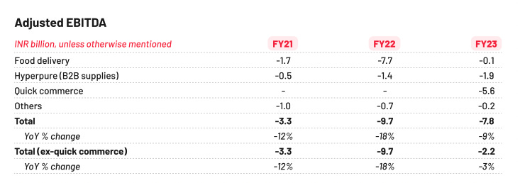 Now that I (pretend to) understand EBITDA and PAT, I went through Zomato’s annual report and understand where the profitability is coming from, and which vertical is bleeding the most amount of money.